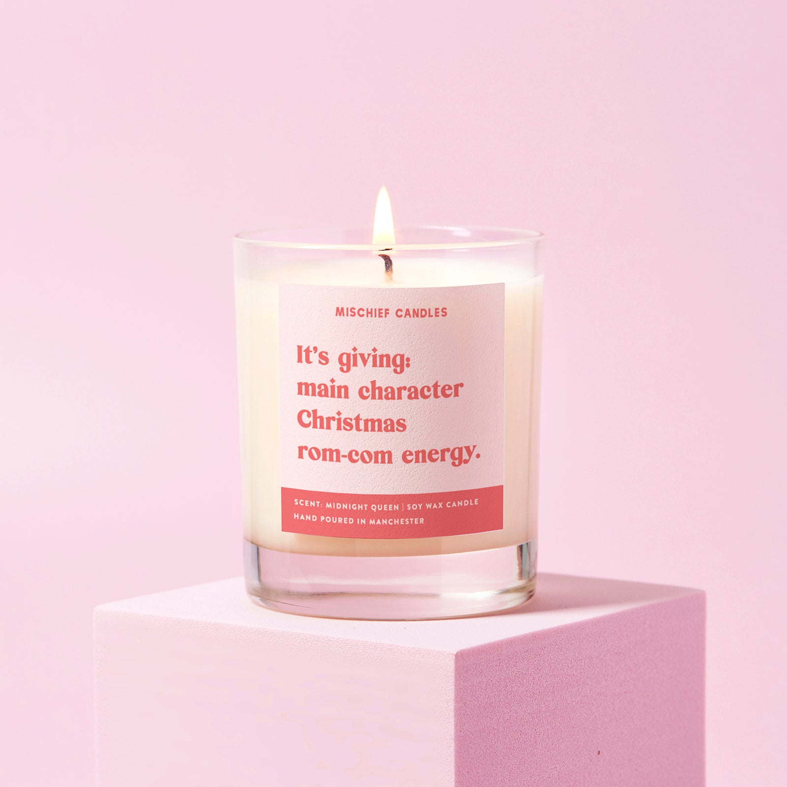 You live in sweaters. You still believe in Santa Claus. We see you, Christmas main character. This cosy candle is perfect for those candlelit, snowed-in evenings when you’re busy re-watching The Holiday and building yet another gingerbread house. Light for the ultimate festive feeling and manifest your small-town soulmate. The eye-catching label reads 'It’s giving: main character Christmas rom-com energy' in our signature red and pink style.